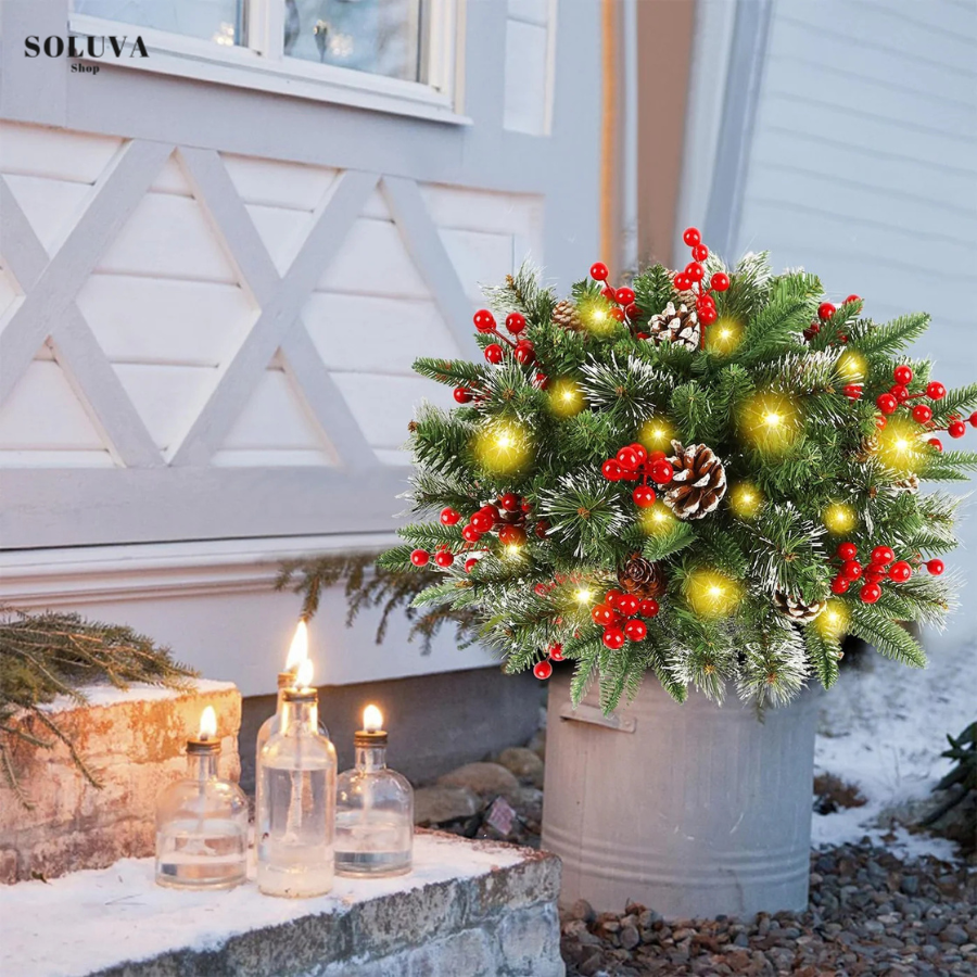De Lichtgevende Kerstkrans – Breng Kerst Tot Leven combineert klassieke kerstgroen met rode bessen, dennenappels en 50 warmwitte LED-lampjes. Dankzij de automatische timer en 8 lichtstanden heb je sfeer zonder gedoe — neerzetten, knopje indrukken en genieten.