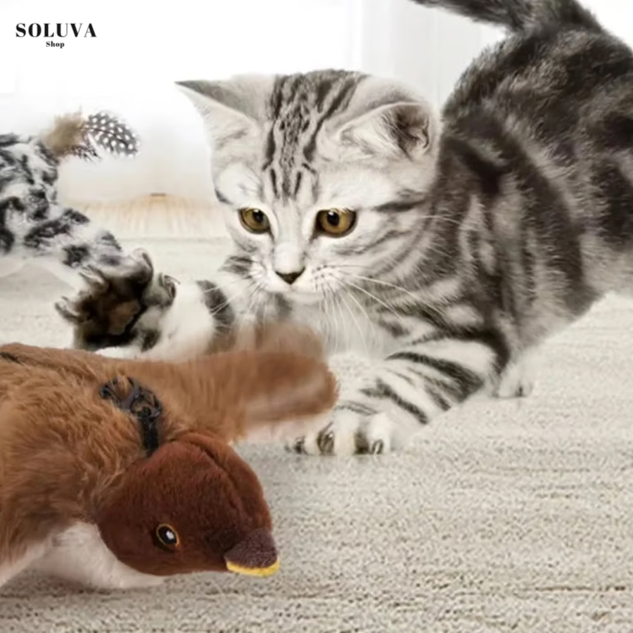 De Interactieve Vogelprooi – De Ultieme Energie-uitlaatklep! bootst echte prooibewegingen na met fladderende vleugels, trillingen en geluid. Het triggert het oerinstinct van je kat: rennen, besluipen, springen en vangen.