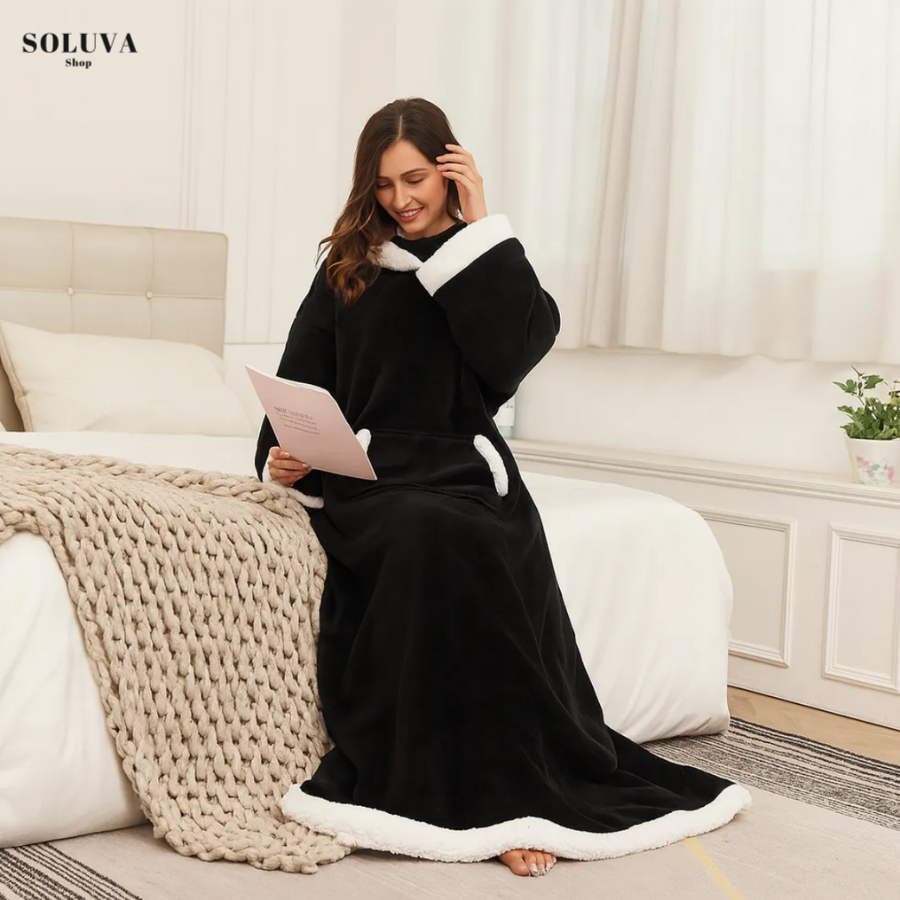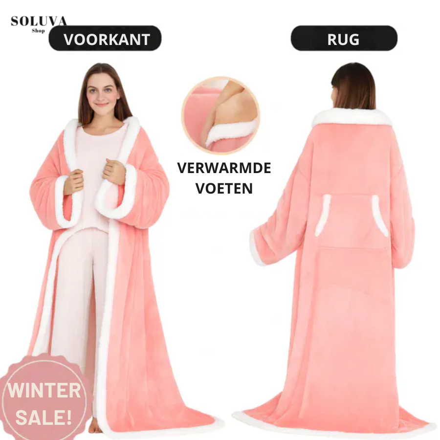 Met de Draagbare Verwarmde Deken – Zeg Dag Tegen Koude Avonden! heb jij binnen enkele seconden directe, gerichte warmte over je hele lichaam. Zachte Sherpa fleece aan de binnenkant, luxueus flanel aan de buitenkant, 6 warmtestanden, mouwen voor volledige bewegingsvrijheid én een voetenzak die je tenen verwarmt zonder sokken. Deze deken verwarmt jou — niet de lucht om je heen. Dat voelt niet alleen beter… dat bespaart ook geld.