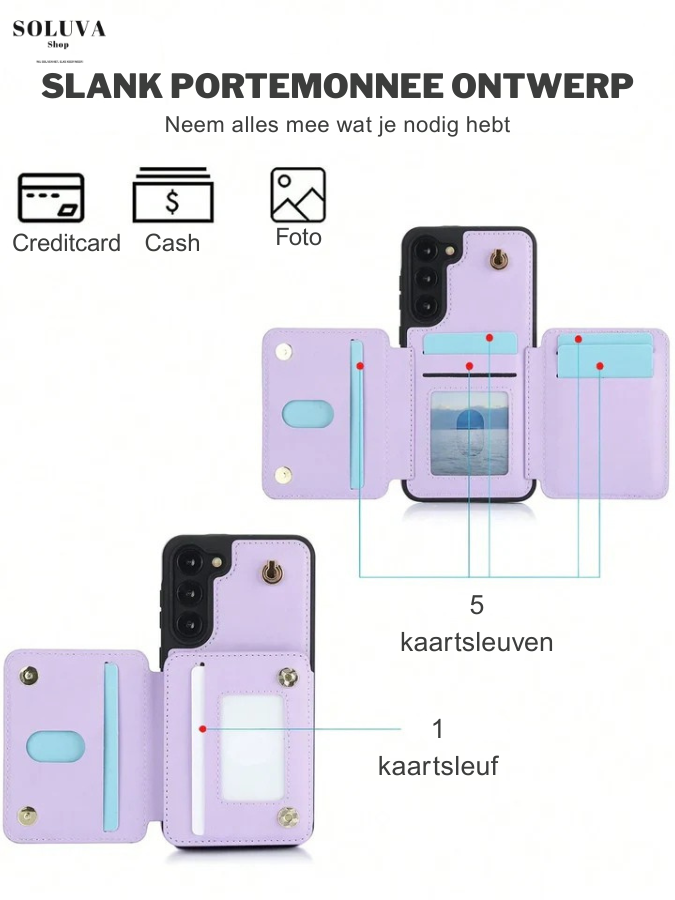 ✅ Grote capaciteit – plek voor je telefoon, contant geld, foto’s én maar liefst 7 passen!